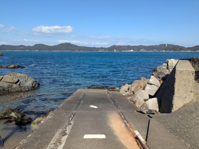海苔やワカメが多数ぶら下がる漁港を抜けると、海辺の遊歩道。