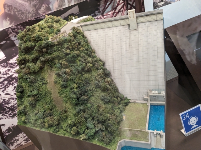 こちらは小河内ダムの模型。大正末期、急速に増加する水需要に対応するため計画された大型ダムで、1938年に建設がスタート。戦時下では一時的に工事が中断され、1957年についに完成します。東京の水の2割を賄う巨大な水がめで、水道用のダムとしては国内最大規模を誇ります。