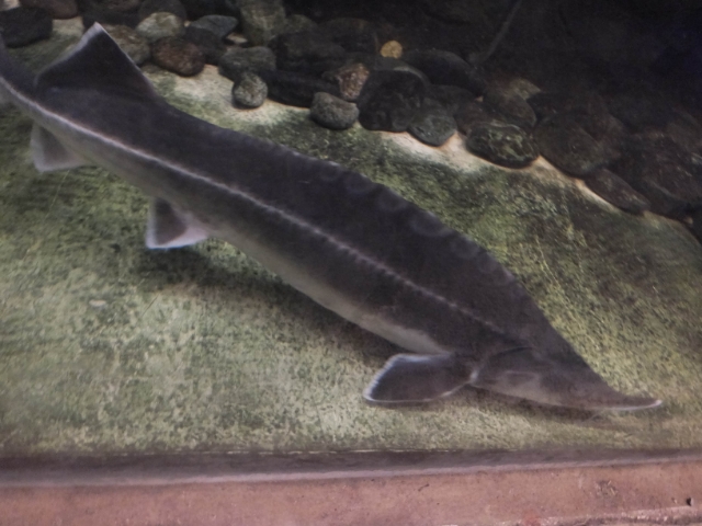 特徴的な姿のチョウザメ。あまり馴染みないサカナですが、かつては北海道の河川でも見かけることができたのですよねー。
