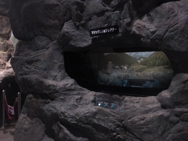 岩の中に設置されたマジックビジョンシアターでは、ダムの話や生き物の解説がホログラム映像で見ることができます。
