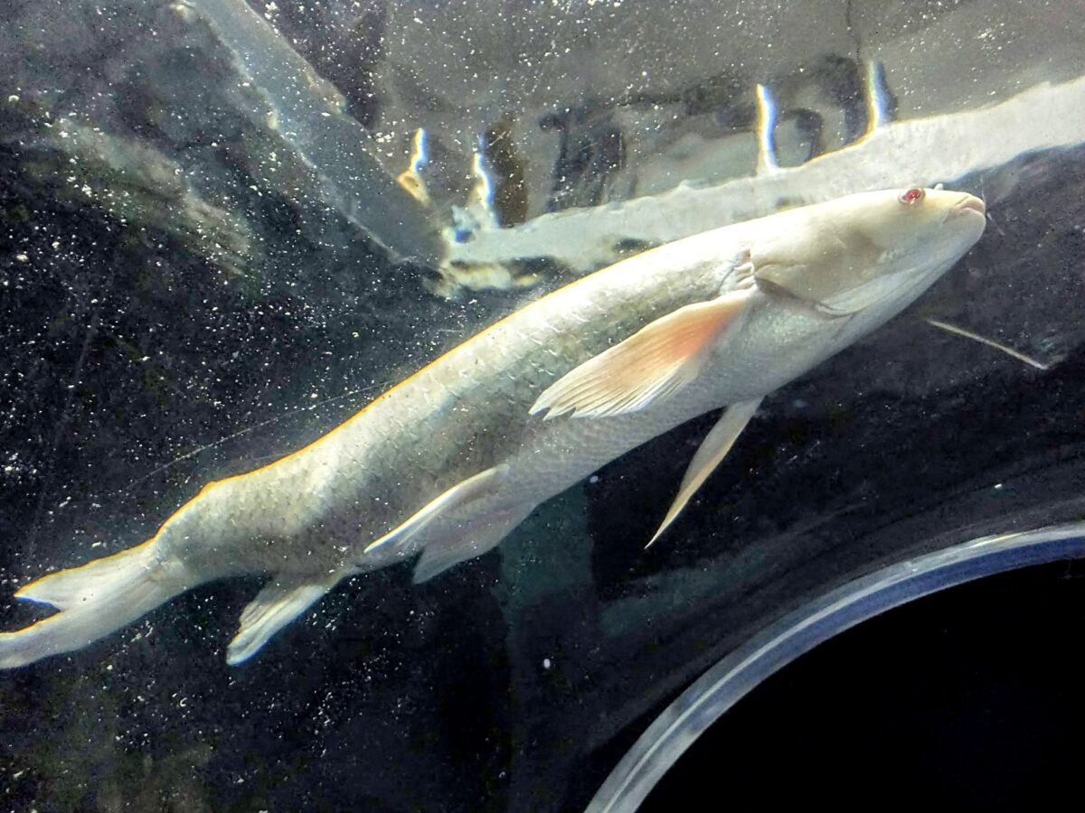 私が訪問した際、アルビノソウギョは合計3匹もいました。他では滅多に見られない真っ白なソウギョ、もし水産学習館に訪問される際はお見逃しなく!