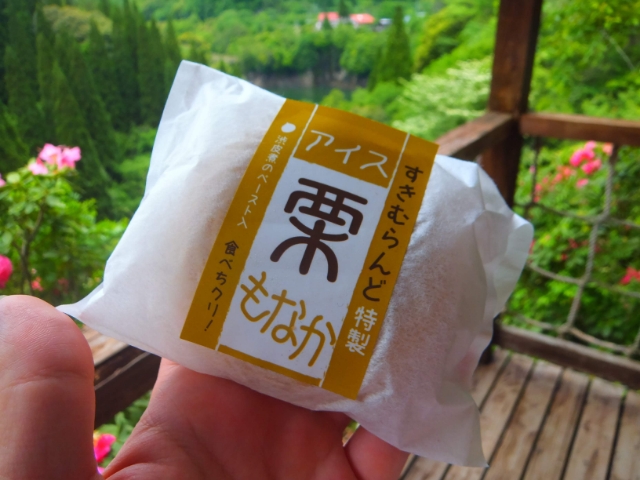 期間限定で「アイス栗もなか」も販売しております。すきむらんど特製、そして「食べちクリ」の一言に負けて買ってみました。さっぱりとした甘さで、暑い季節に食べるととっても美味しいです。