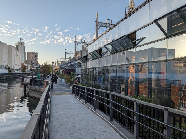 隅田川から延びる北十間川を眺めながら、ゆったりひと休みするのにもぴったりな場所でした。