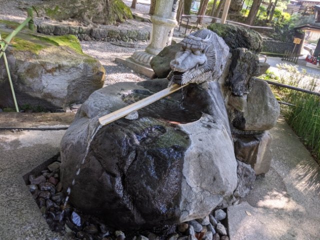 龍の口からこんこんと水が流れる御神湯。流れているのはアツアツの温泉水で、温泉手水とも呼ばれています。古来より温泉地として人々に親しまれている下諏訪ならではの、源泉かけ流しの手水なのです。