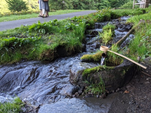 本殿のすぐ隣には、水眼(すいが)という名の清流が流れています。7月という真夏の訪問でしたが、水は冷たくてとても気持ち良い。
