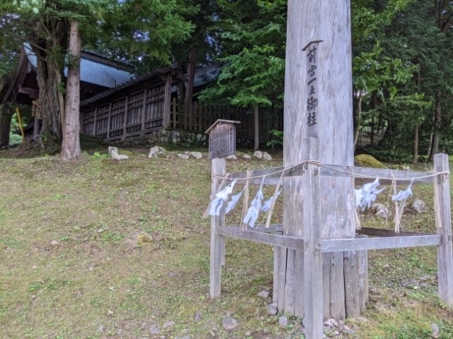 各宮でも見ることができる4本の御柱ですが、近くで見られるのは拝殿に向かって左右に立つ「一之御柱」と「二之御柱」の2本のみ。残る「三之御柱」と「四之御柱」の2本は近くに立ち入れないため、遠くから遥拝する形となっていました。