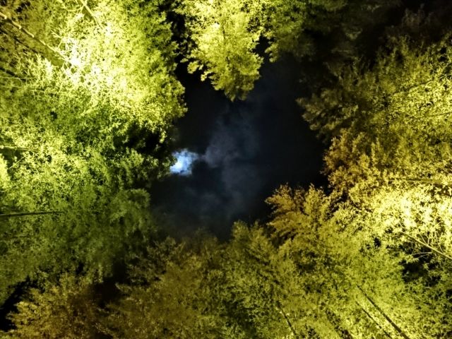 そんな竹林の真ん中にあるのは竹製の丸いベンチ。これまた照明の効果もあって、とっても絵になる光景です。