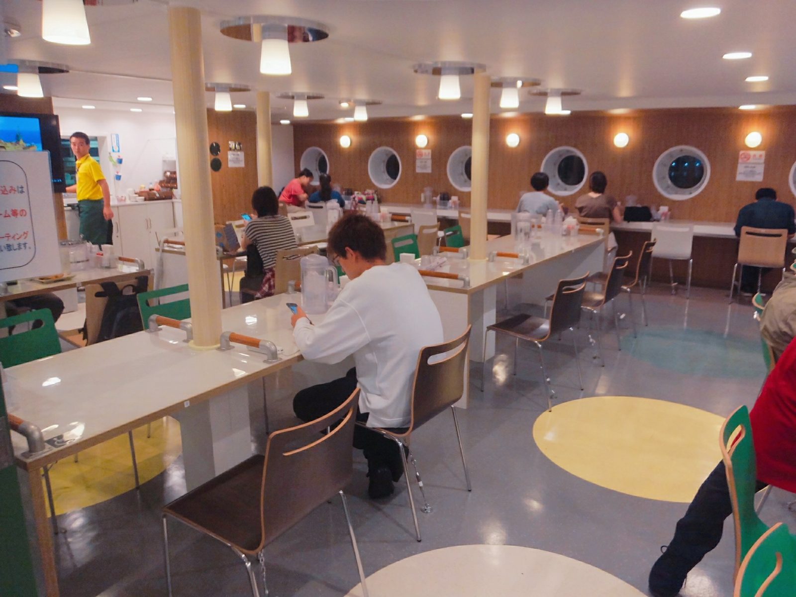 大型船ですが、船内はそこまで広くありません。小笠原諸島へ向かう「おがさわら丸」や北海道行きの「さんふらわあ」に比べると少々狭く感じます。