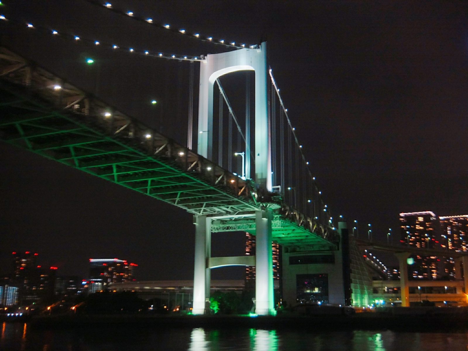 さて、そろそろ出港の時間。せっかくなので甲板へ。ちょうどレインボーブリッジをくぐるタイミング!