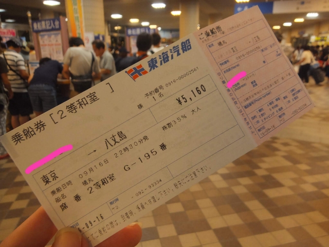 乗船2日前にダメ元で電話したところ、ちょうどキャンセルがあって席を確保することができたのでした!東海汽船の対応も良くて、特にいち早くキャンセル枠を教えてくれたOさん(仮名)本当にありがとうございました。