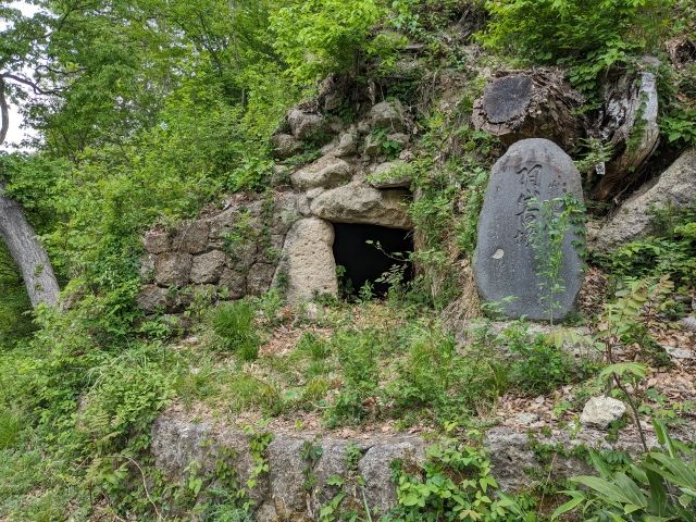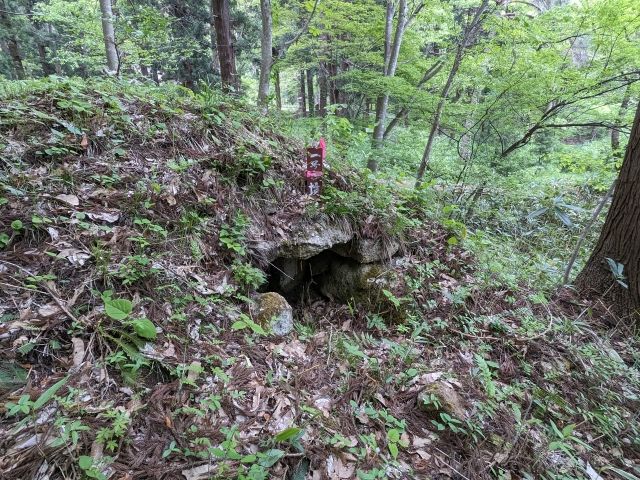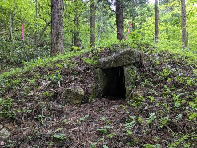 2つの古墳が並んでおり、手前が1号墳。金原古墳と同じく凝灰岩の石室があります。封鎖されているわけではないのですが入口はとっても小さく狭いため入りにくいです。