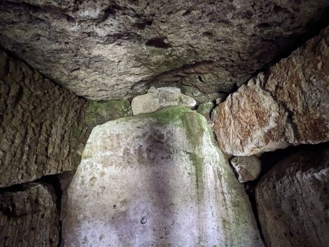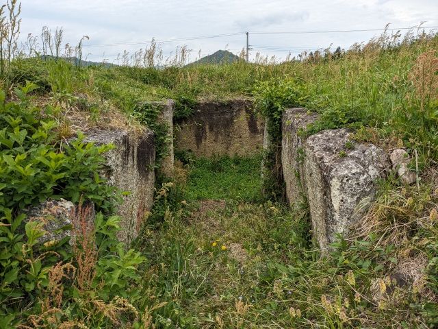 羨道と玄室からなる石室も見ることができます。凝灰岩の切石でできていることなので、おそらく高畠町名産の「髙畠石」でできているのでしょう。なお、石室の天井となる蓋石は失われており、オープンな状態です。