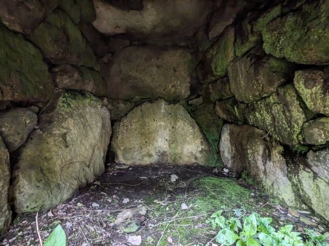 上ること5分ほどで古墳が見えてきました。石垣のように小さな石が組み上げられた姿が力強さを感じる姿。山の上にあるため、大きな石は運べなかったのかもしれません。