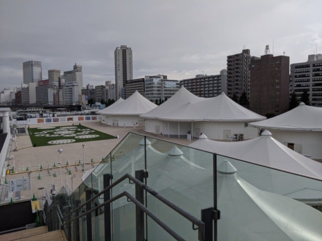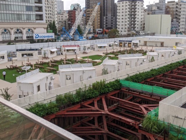 駅前はイベント広場。白いテントのようなものは7/14~9/6に開催予定のJ-WAVE NIHONMONO LOUNGE。J-WAVEがプロデュースするレストランで、日本各地の美味しい物が集まるそうです。