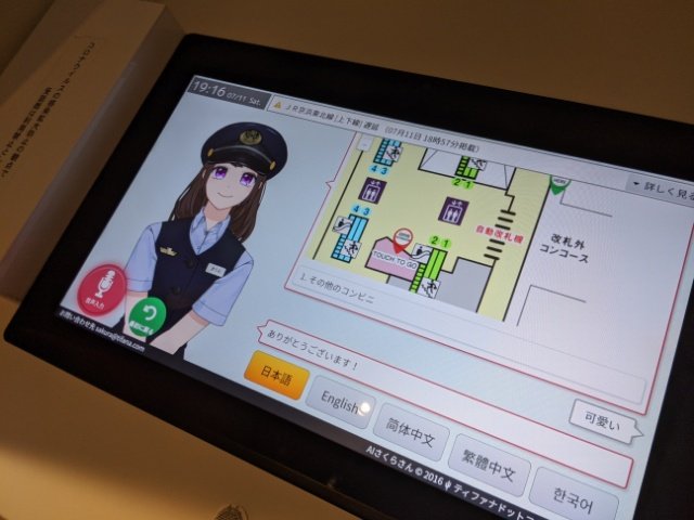 話題になったAIによるインフォメーションパネル。男性タイプと女性タイプの2台設置されています。本来は受話器で話すことができるのですが、現在は使用停止中。直接話しかけることになるので、周りに人がいるとちょっとだけ恥ずかしい。