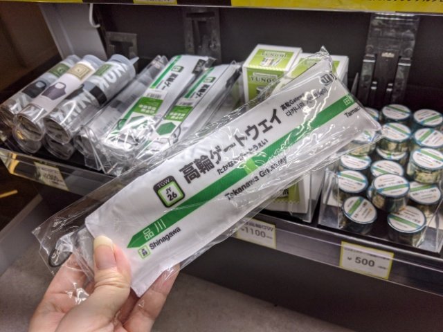 なお、高輪ゲートウェイの駅名グッズも販売中。ボールペンやマスキングテープに加えて、折りたたみ傘などなかなかユニークな物も。