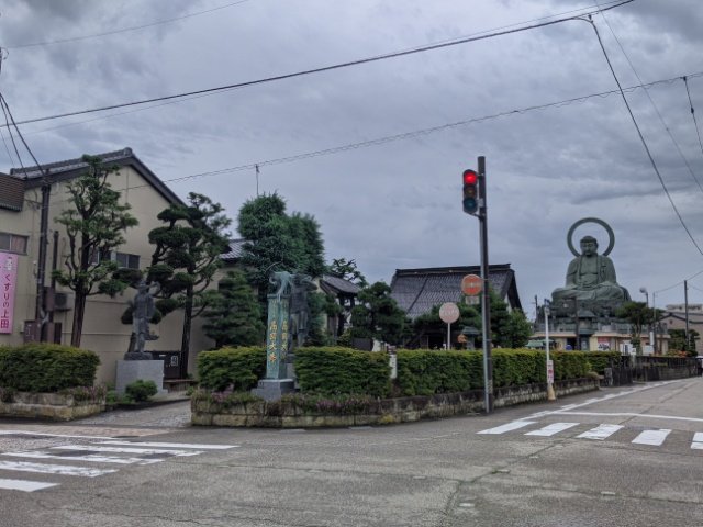 高岡大仏は、あいの風とやま鉄道の高岡駅から徒歩10分ほどの市街地にあります。