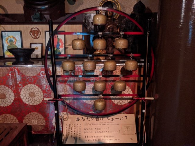 吊るされている12のおりん。「あなたの音はなぁ〜に?」と書かれています。12という数が示すもの、それは干支!それぞれのおりんが司馬遷の「史記」に基づく十二支の音を現しているそう。