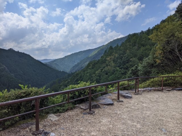 境内を奥へ進むと、山々を見渡せる展望台が広がります。鳥の声と虫の声だけが響く静かな風景に心が安らぎます。