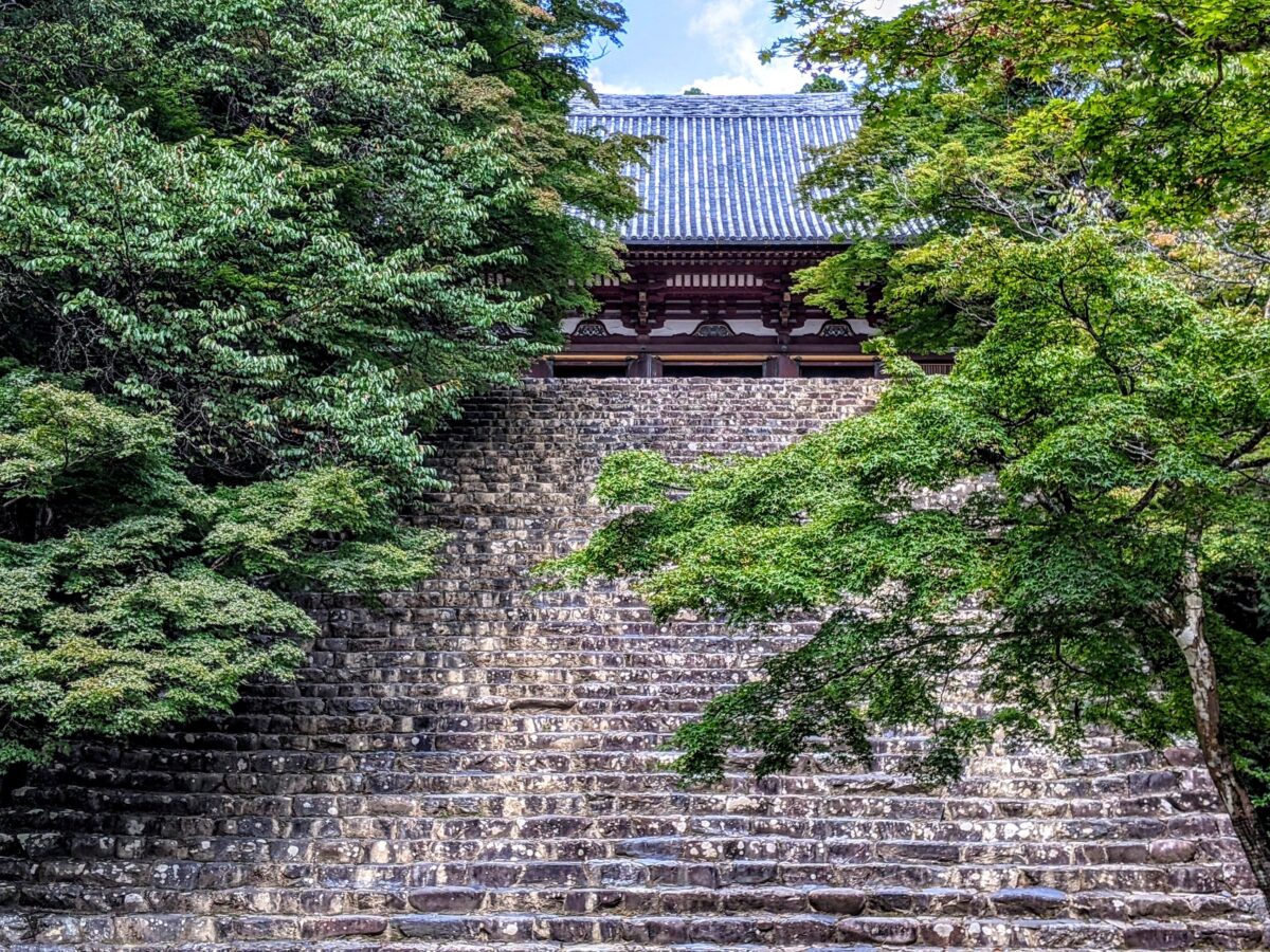 金堂へと続くそびえる石段。ゴツゴツした武骨な姿はまるで武者の鎧の草摺(くさずり=腰回りに垂れている部分)のようです。