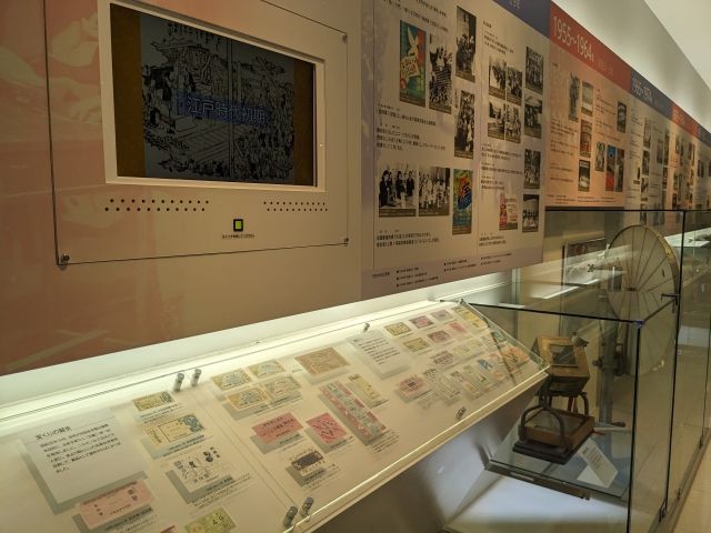 宝くじに関連する様々な展示が広がるミュージアム。戦後復興期の宝くじ看板や、高額当選者しか見ることのできない「その日から読む本」など、他では見ることのできないユニークな展示品を見ることができます。