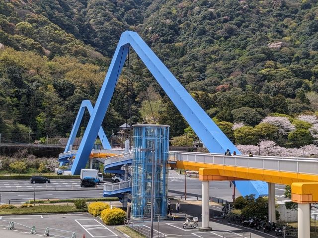そんな高崎山自然動物園は、水族館うみたまごの向かいにあります。駐車場も共有であるため、合わせての訪問がおすすめ。うみたまごからは、ブルーとイエローの歩道橋をわたって向かいます。