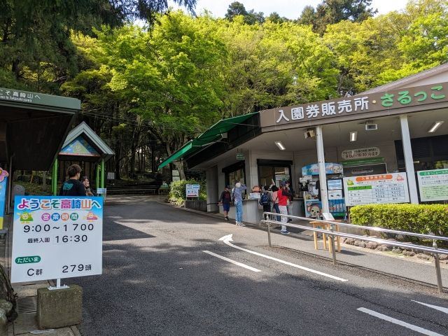 歩道橋を渡り、少し歩くと受付。見どころとなるサル寄せ場は山にあるため、ここから先はモノレールに乗車するか階段で登るかの2択。「入園券」or「入園券+モノレール」いずれかのチケットを購入します。