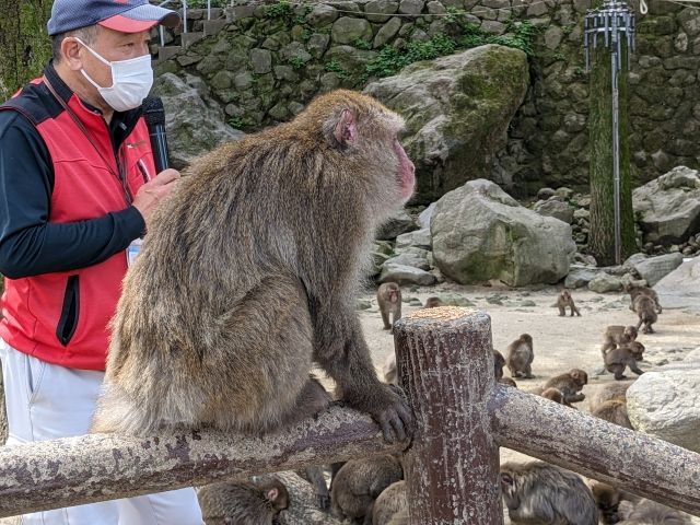 おじさんはエサをやりながらもサルたちのことをいろいろと教えてくれます。