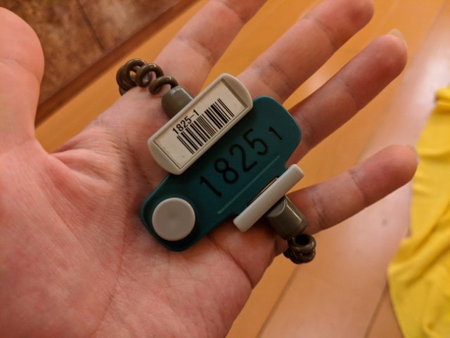 受付で靴箱のカギと、入館リストバンドを交換します。館内での食事や自販機などは全てこちらのバーコードを利用するので楽々です。
