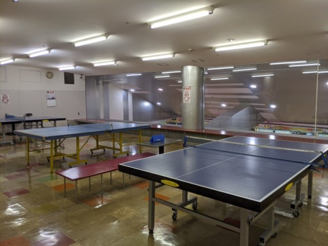 ボーリング場の上には卓球もあります。料金は30分800円。こちらは温泉の館内着ととっても馴染みますね。