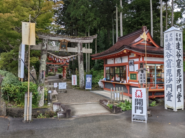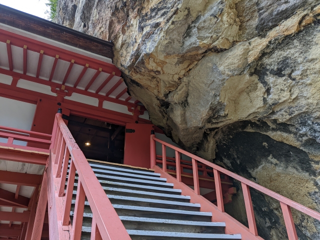 拝観料を支払い境内へ進むとすぐに見えてくるのは大きな毘沙門堂。岩肌に埋め込まれるかのように造られたお堂はなかなかのインパクトです!
