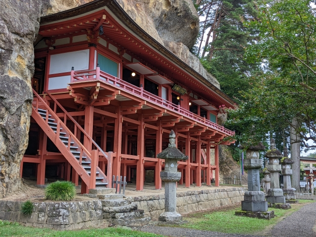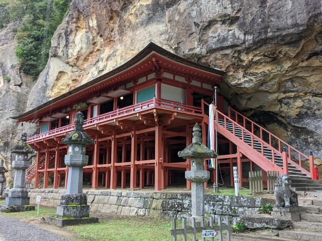中尊寺や毛越寺のある平泉の中心部から少し離れたところに建つ達谷窟毘沙門堂。世界遺産からは外れておりますが、インパクトのある建築や巨大な摩崖仏など見どころがわかりやすく人気の高い寺院です。