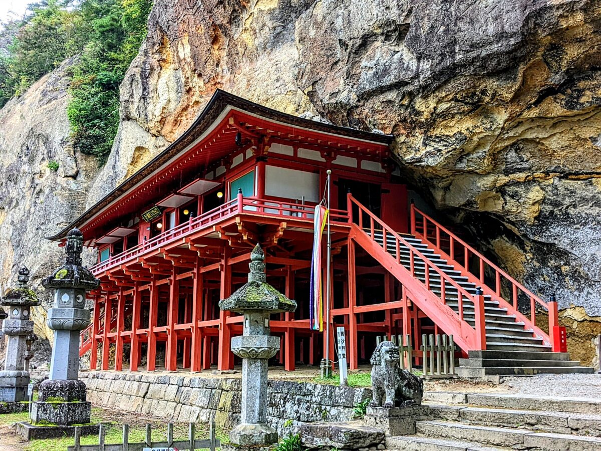中尊寺や毛越寺のある平泉の中心部から少し離れたところに建つ達谷窟毘沙門堂。世界遺産からは外れておりますが、インパクトのある建築や巨大な摩崖仏など見どころがわかりやすく人気の高い寺院です。