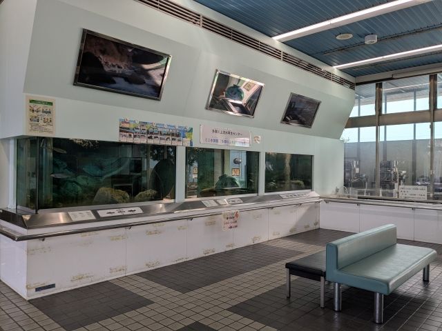 こちらが水族館の入り口。内部は暖房がしっかりきいており、自動販売機もあります。無料で利用できるので、休憩がてら立ち寄りもおすすめ・・・と言いたいところですが、周辺には特に何もないので、ついでに立ち寄れるようなところではない気がします。