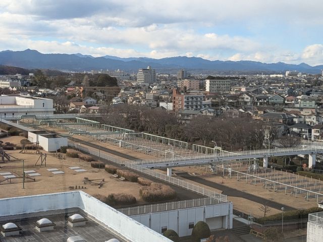 北側は昭島駅、中神駅、遠くに立川駅周辺の街並み。