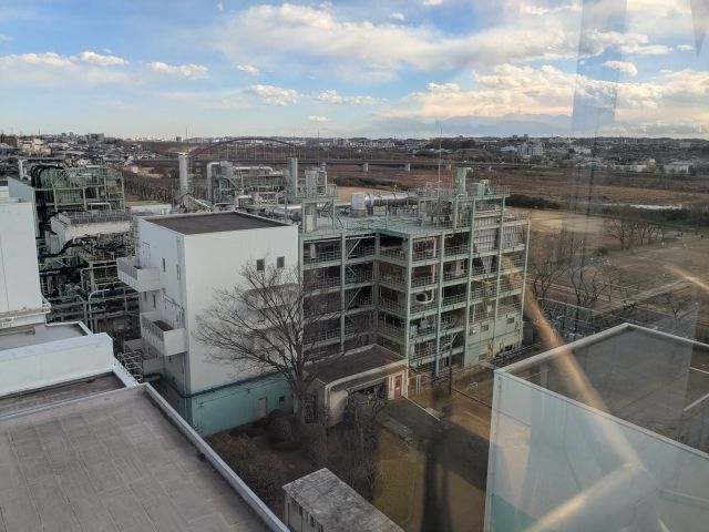 南側は機械棟や特高受変電棟、その奥にゆったりとした多摩川が流れています。対岸には八王子水再生センターがあり、ここと連絡管で繋がっているそうです。