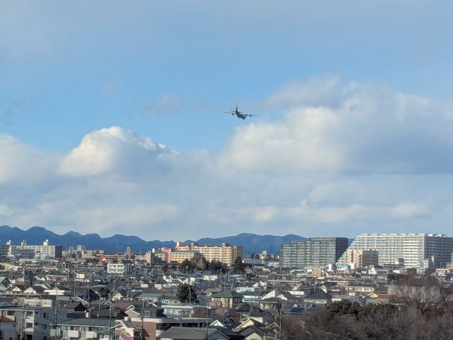 そして、この周辺は飛行機が多数飛んでいます。通常の旅客機とは異なる小型機やオスプレイっぽい機体も。立川の陸上自衛隊駐屯地あたりで離着陸しているのかもしれません。