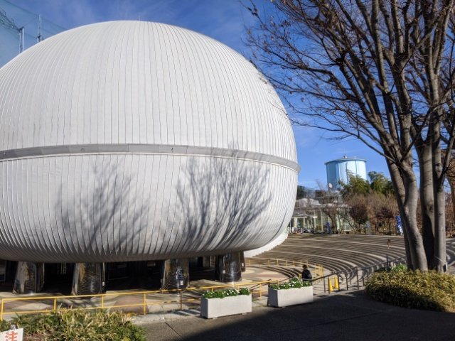 自転車ならば花小金井駅から5分ほどですいーっと到着。多摩六都科学館の外観は、シルバーの球体がまるで科特隊の秘密基地のようでとってもインパクトあります。