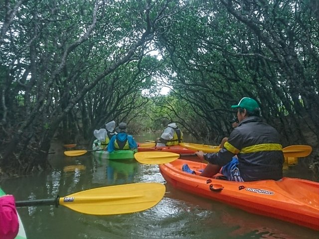 パドルを漕いで進んで行くと、マングローブのトンネルに到着。ガイドさんがマングローブや種子島についての色々な話をしてくれます。
