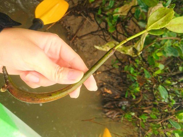 「何だと思う?これね、マングローブの苗木。」