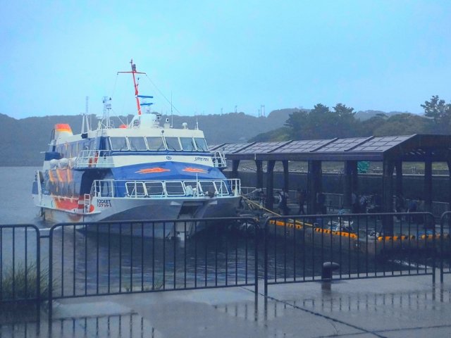 7:00発のジェットフォイルに乗るため、安房港へ。予約していなかったので、受付で乗船券を購入します。この鹿児島・屋久島・種子島の航路を運航しているジェットフォイルは、「トッピー」と「ロケット」の2種類。今回はロケットに乗って種子島へ!「ロケットに乗って種子島」この響き良くないですか?