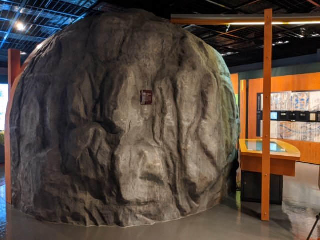 こちらは「大場の大転石」の模型。直径6.5m・推定重量400トンといわれる巨大な石ですが、安政5年の洪水で流れてきたそう。こんな巨大な石が流れてくるなんて、考えただけでも恐ろしいです。