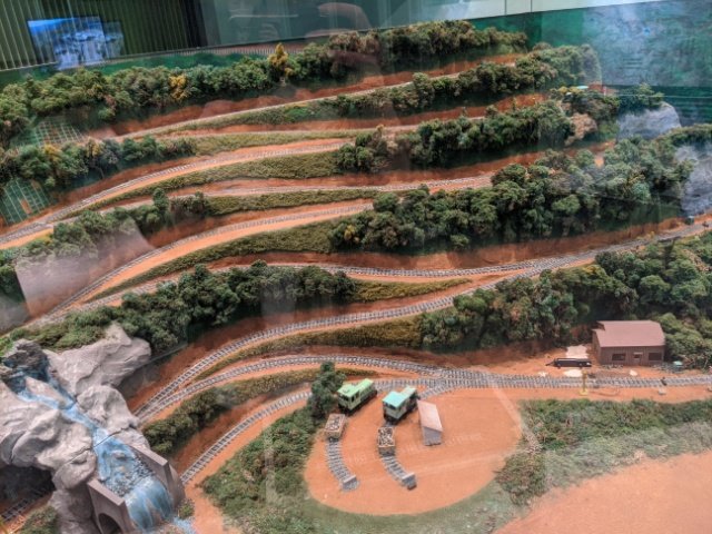 トロッコ列車は、急斜面を登るため折り返し運転を行うスイッチバックを繰り返し、砂防工事のための資材や作業員を運んでいました。