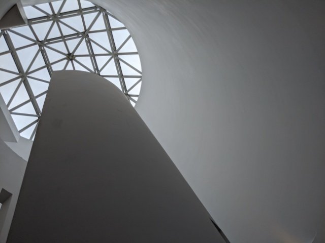 博物館ときくと四角いコンクリートな建物をイメージしがちですが、この展示館はかなりアーティスティック。てっぺんがガラスのピラミッドやカーブを描く側面など、まるで美術館のような出で立ちです。