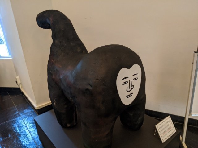館内のあちこちに潜む不思議なキャラクターを見つけました。ゆるキャラのようですが、その表情はどこか悲しげに見えます。