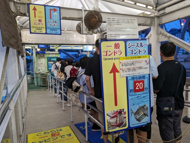 このうち8基だけ、イスも床も透明なシースルーキャビンがあります。訪問時、通常ゴンドラは待ち無しで乗車可能でしたが、シースルーは列ができており、20分ほどの待ち時間が発生していました。