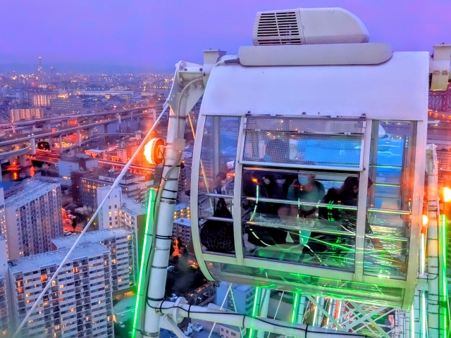 実はこの天保山大観覧車、日本夜景遺産にも認定されています。観覧車も含めた夜景を楽しみたい方は、さきしまコスモタワー(大阪府庁咲洲庁舎)あたりから見ると良さそうです。