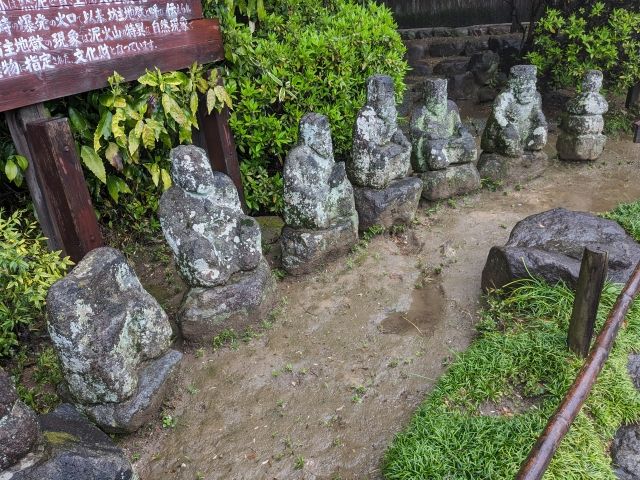 並んだ石像は「十王尊像」。延内寺があった頃には9体あったとされる十王像ですが、今は6体だけが残っています。残る3体は延内寺爆発跡に沈んでいるそう。爆発時からあったということは、室町時代以前からこの地に存在しているのですね。