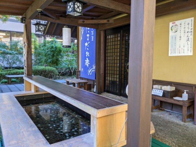 たまだれ庵という茶屋もあります。お団子や飲み物だけでなく、おそばやおでん、そうめん流しなどしっかりした食事メニューも。店先には足湯があり、無料で利用できます。