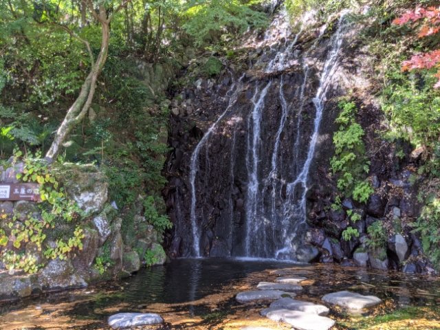 飛び石が滝壺の中に敷かれており、すぐ近くまで接近することができます。